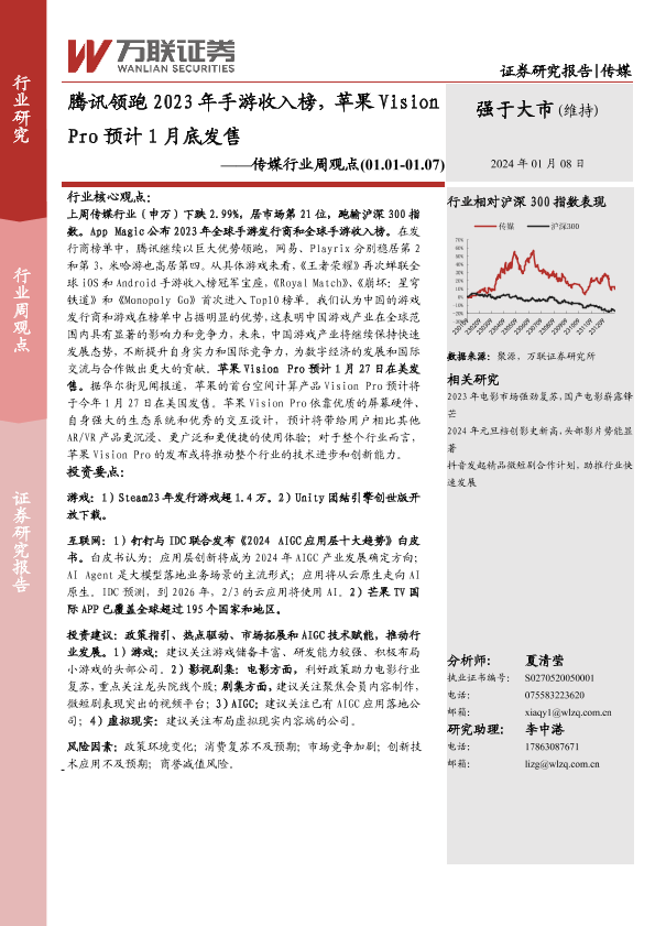 【万联证券】【20240108】腾讯领跑2023年手游收入榜,苹果Vision Pro预计1月底发售-14页
