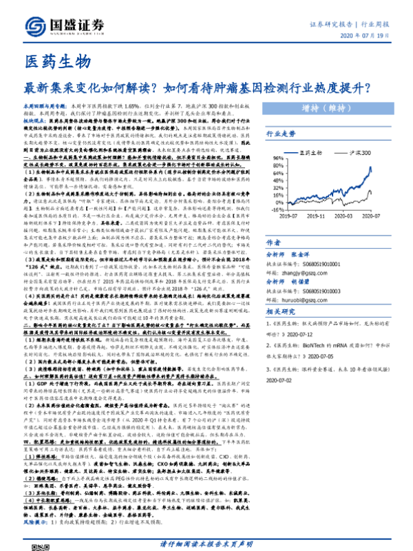 【国盛证券】【20200719】医药生物行业周报:最新集采变化如何解读?如何看待肿瘤基因检测行业热度提升?-34页