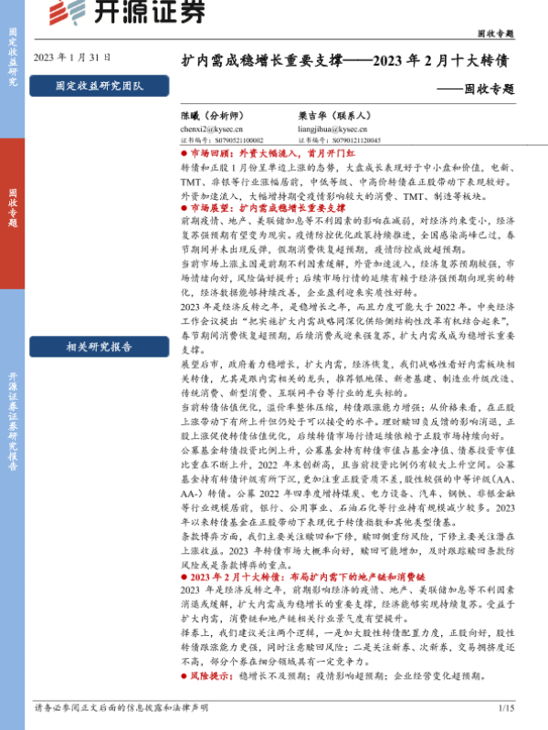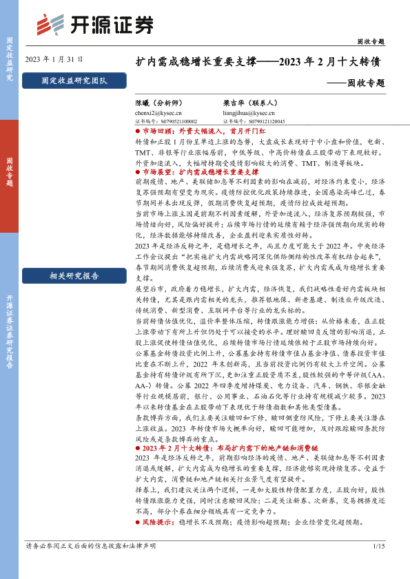【开源证券】【20230131】固收专题:2023年2月十大转债,扩内需成稳增长重要支撑-15页