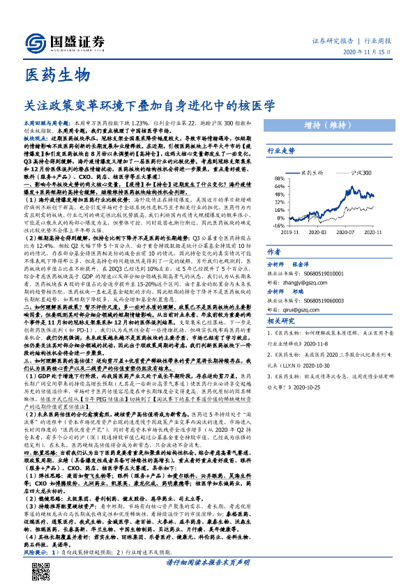 【国盛证券】【20201115】医药生物行业周报:关注政策变革环境下叠加自身进化中的核医学-27页