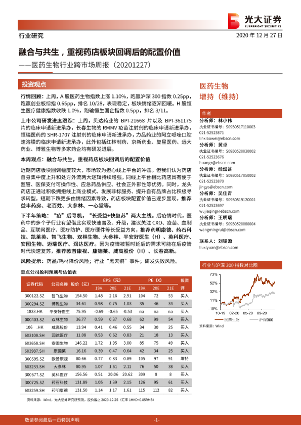 【光大证券】【20201227】医药生物行业跨市场周报:融合与共生,重视药店板块回调后的配置价值-33页