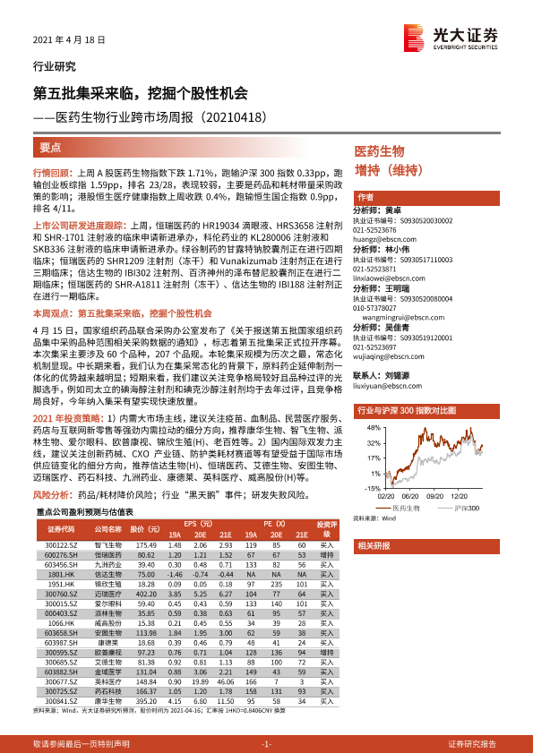 【光大证券】【20210418】医药生物行业跨市场周报:第五批集采来临,挖掘个股性机会-37页
