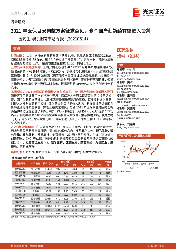 【光大证券】【20210615】2021年医保目录调整方案征求意见,多个国产创新药有望进入谈判-33页