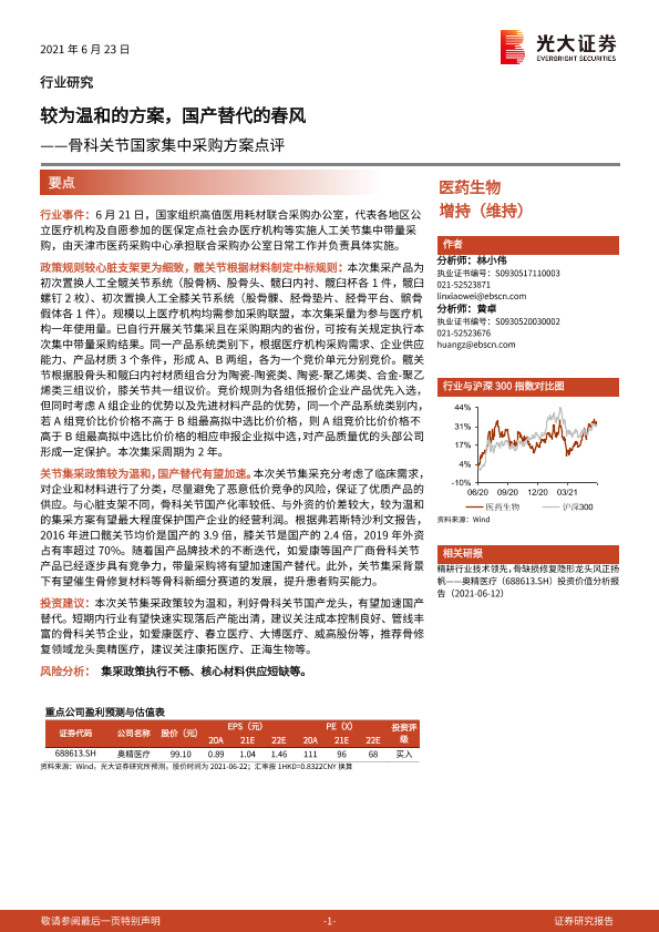 【光大证券】【20210623】骨科关节国家集中采购方案点评:较为温和的方案,国产替代的春风-2页