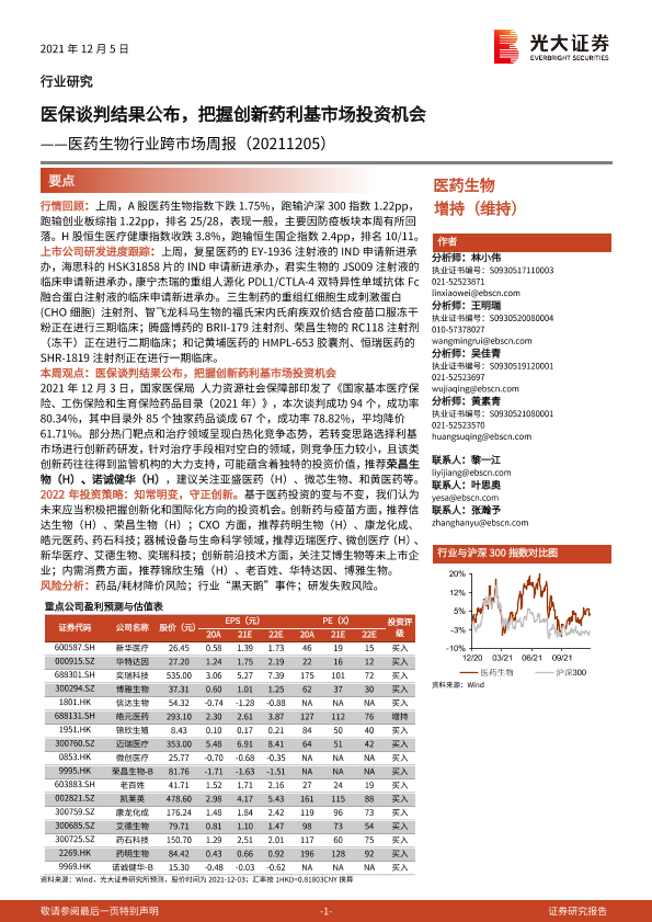 【光大证券】【20211205】医药生物行业跨市场周报:医保谈判结果公布,把握创新药利基市场投资机会-27页