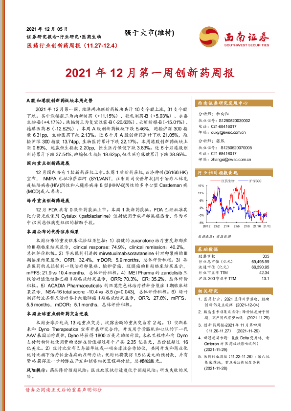 【西南证券】【20211205】2021年12月第一周创新药周报-17页