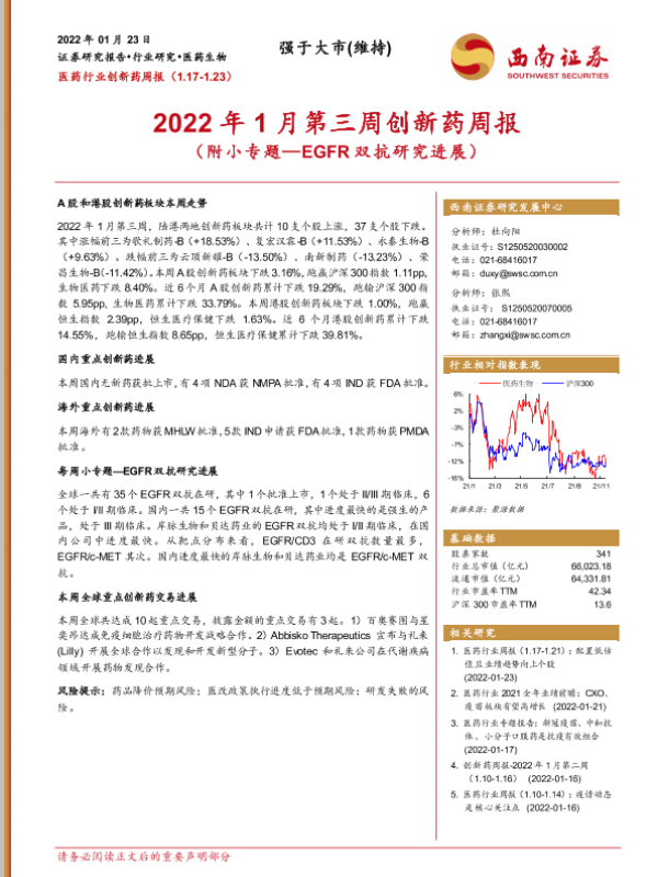 【西南证券】【20220123】2022年1月第三周创新药周报-25页