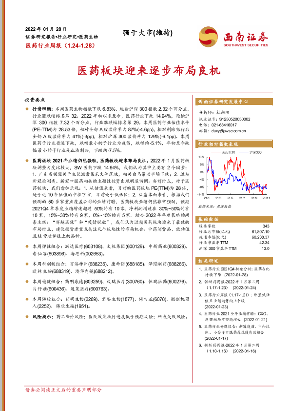 【西南证券】【20220128】医药行业周报:医药板块迎来逐步布局良机-39页