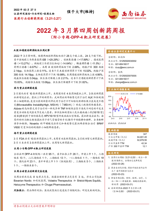 【西南证券】【20220327】2022年3月第四周创新药周报-28页