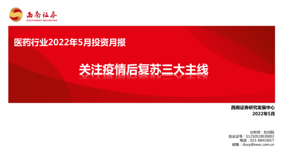 【西南证券】【202205】医药行业2022年5月投资月报:关注疫情后复苏三大主线-90页