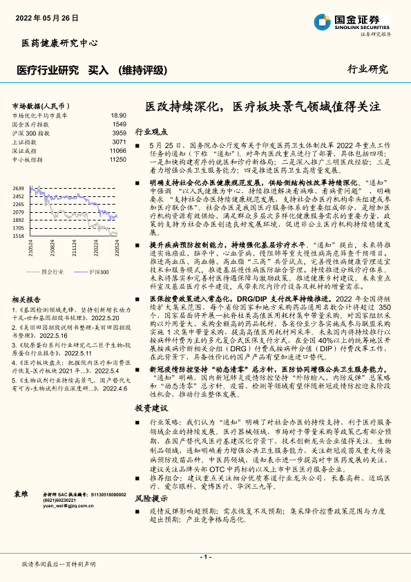 【国金证券】【20220526】医疗行业研究:医改持续深化,医疗板块景气领域值得关注-9页
