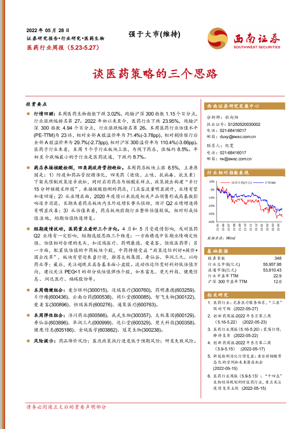 【西南证券】【20220528】医药行业周报:谈医药策略的三个思路-40页