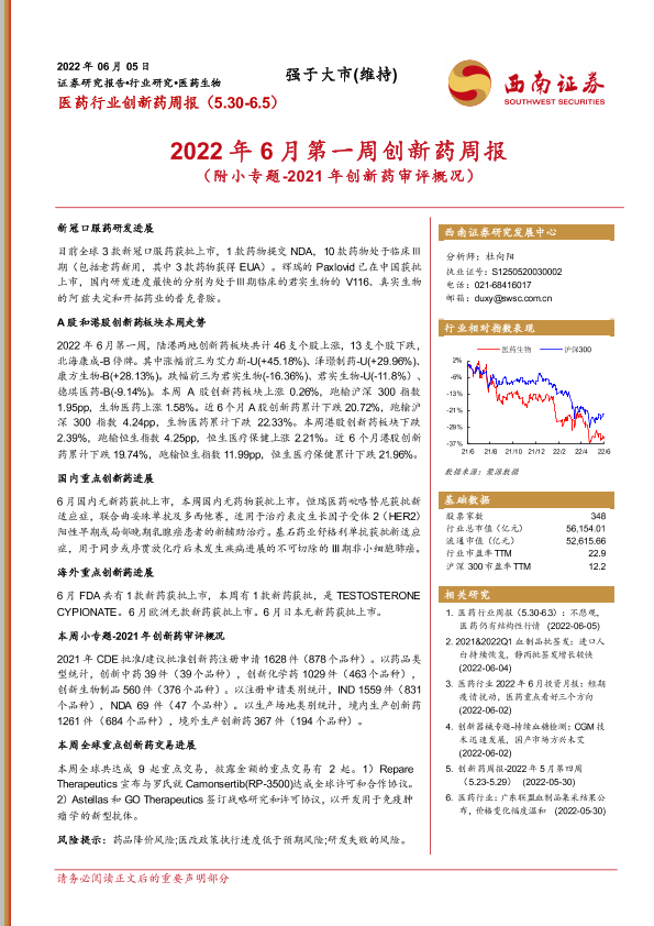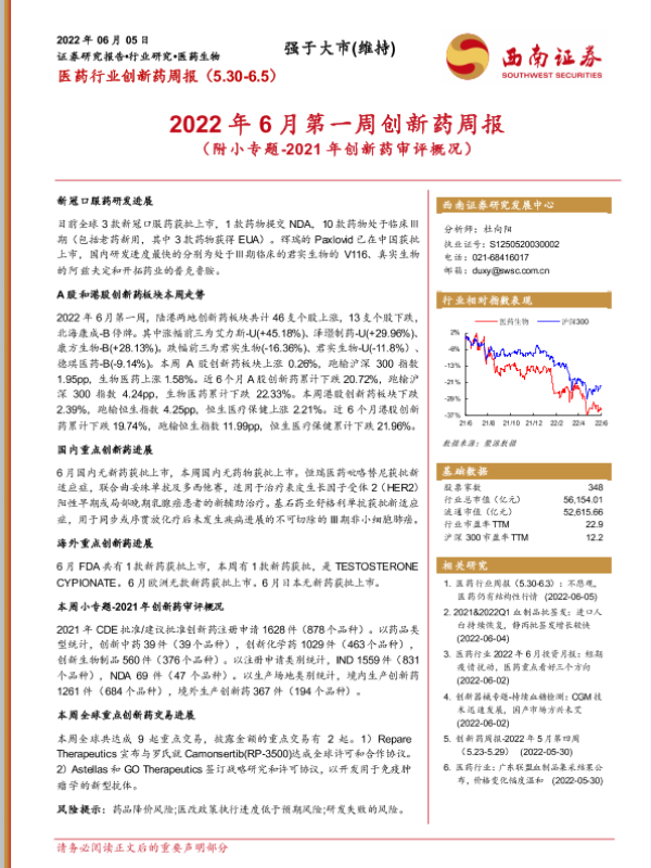 【西南证券】【20220605】2022年6月第一周创新药周报-30页