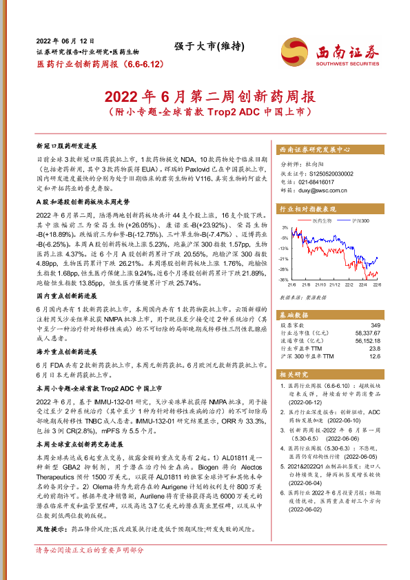 【西南证券】【20220612】2022年6月第二周创新药周报-29页