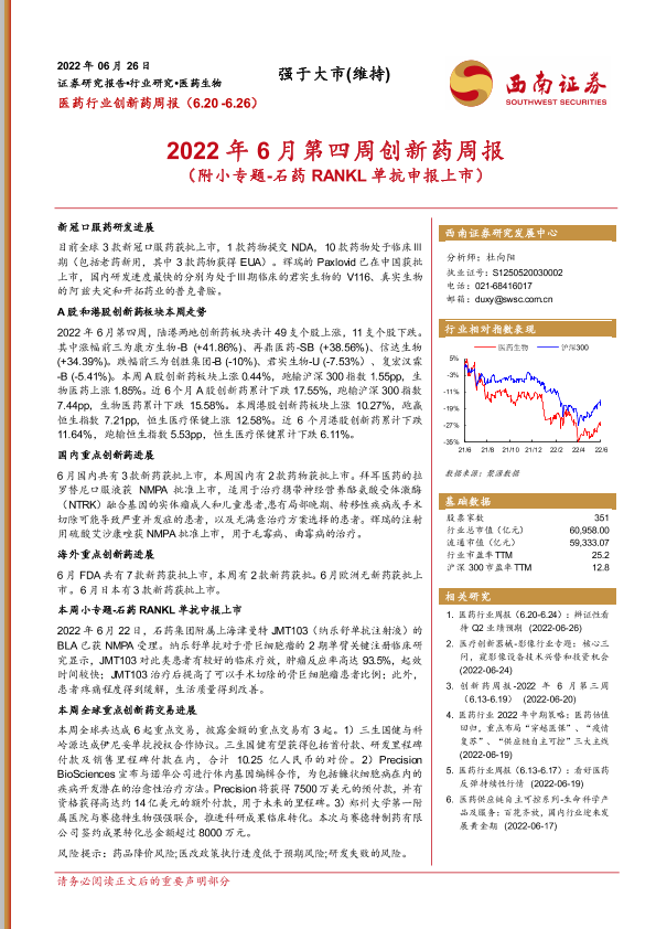【西南证券】【20220626】2022年6月第四周创新药周报-26页