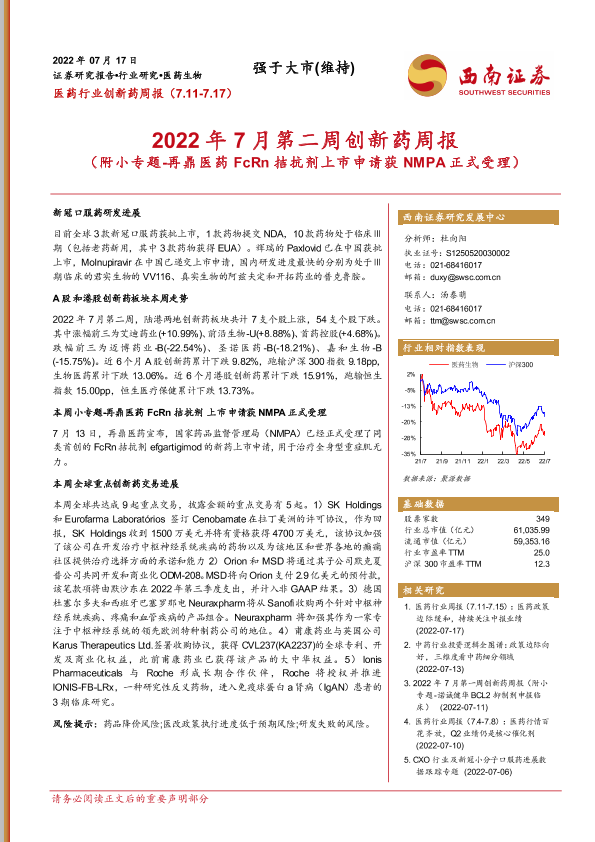 【西南证券】【20220717】2022年7月第二周创新药周报-23页