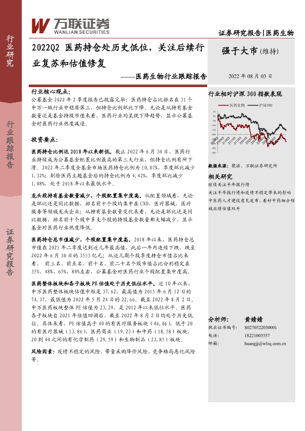 【万联证券】【20220803】2022Q2医药持仓处历史低位,关注后续行业复苏和估值修复-10页