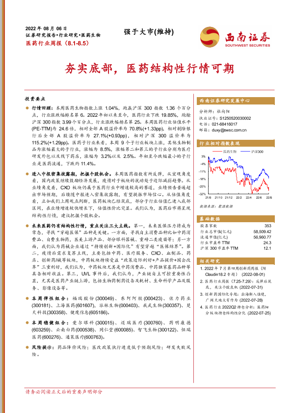【西南证券】【20220806】医药行业周报:夯实底部,医药结构性行情可期-36页