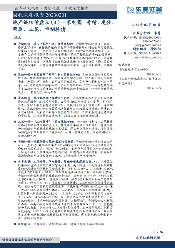 【东吴证券】【20230201】地产链转债盘点(4):家电篇,奇精、奥佳、荣泰、三花、华翔转债-36页
