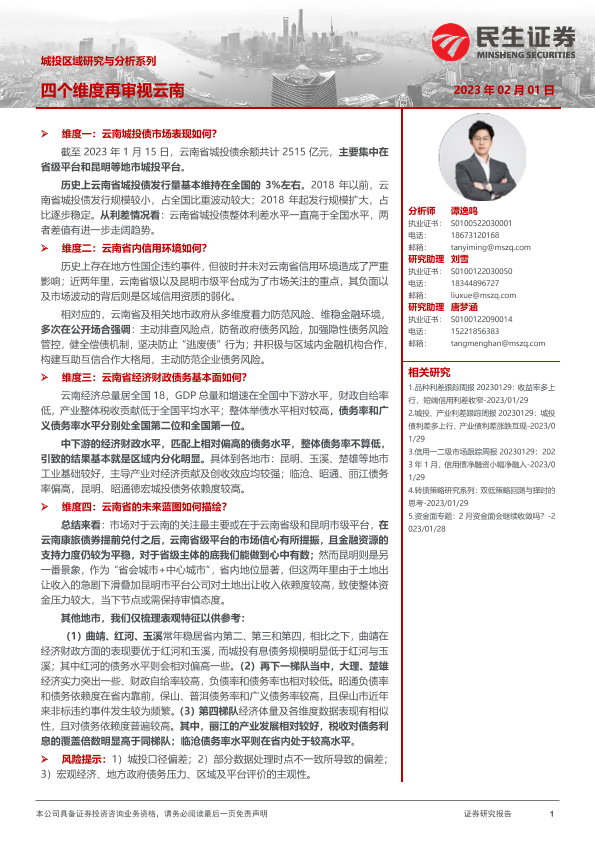 【民生证券】【20230201】城投区域研究与分析系列:四个维度再审视云南-33页