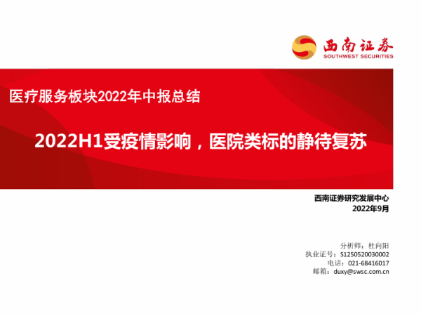 【西南证券】【202209】医疗服务板块2022年中报总结-15页