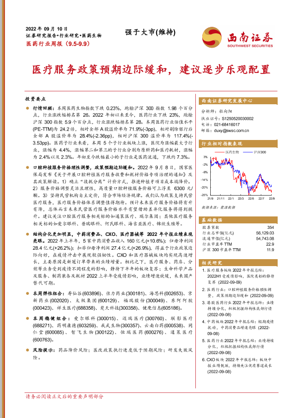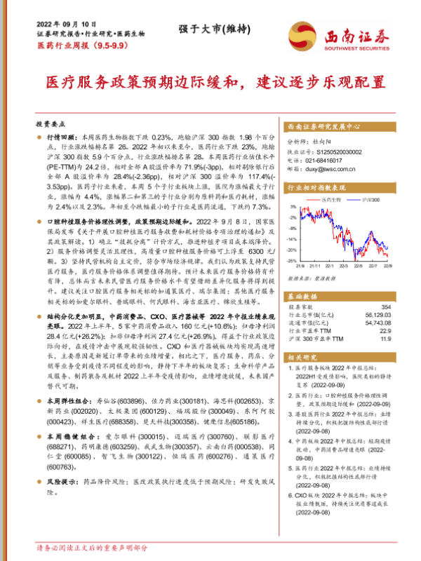 【西南证券】【20220910】医药行业周报:医疗服务政策预期边际缓和,建议逐步乐观配置-39页