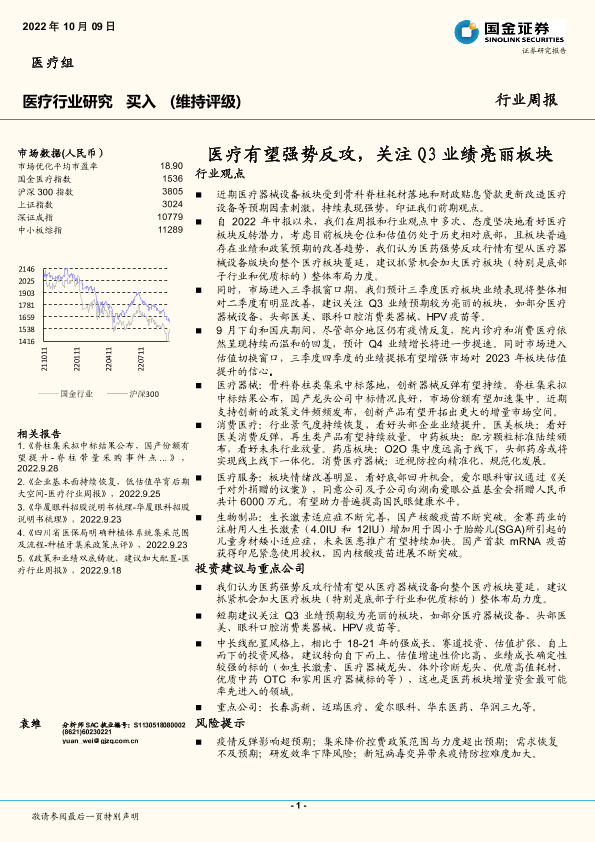 【国金证券】【20221009】医疗有望强势反攻,关注Q3业绩亮丽板块-11页
