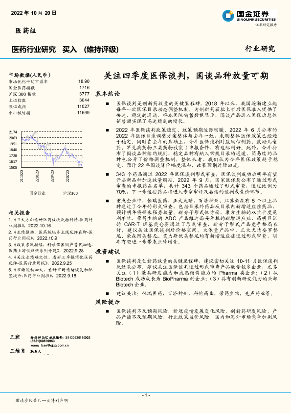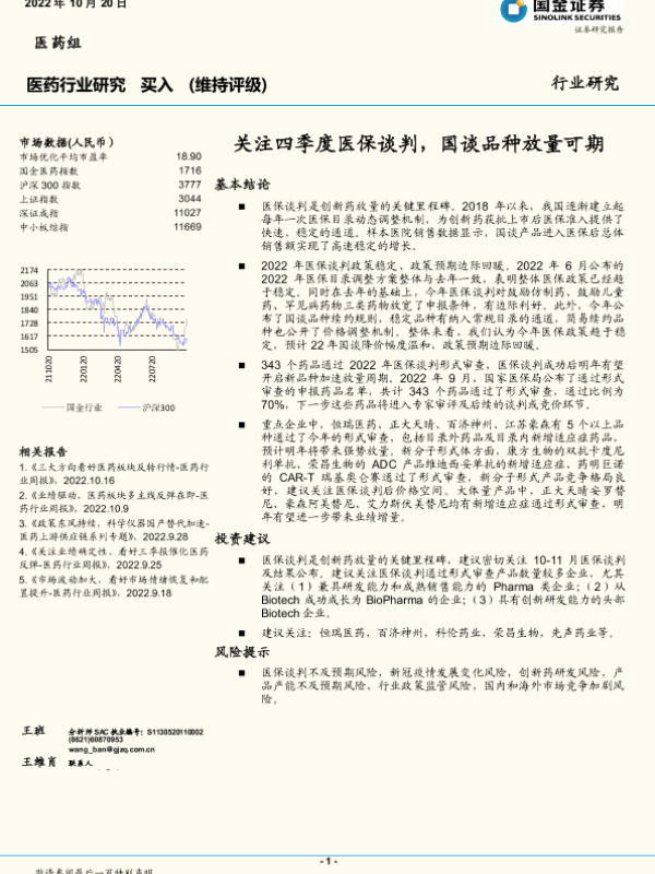 【国金证券】【20221020】关注四季度医保谈判,国谈品种放量可期-12页