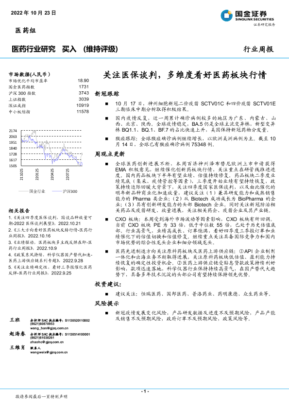 【国金证券】【20221023】医药行业研究:关注医保谈判,多维度看好医药板块行情-19页