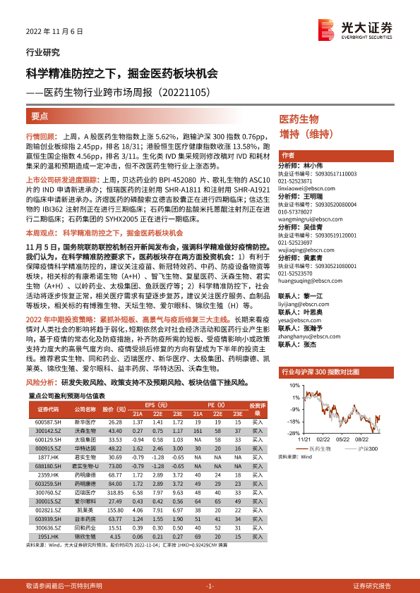 【光大证券】【20221106】医药生物行业跨市场周报:科学精准防控之下,掘金医药板块机会-31页