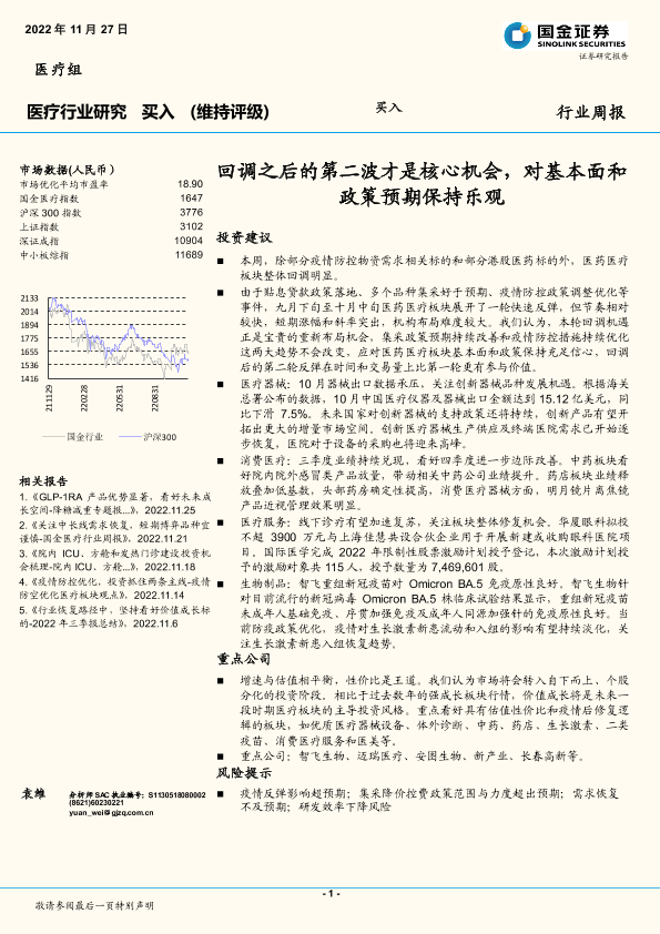 【国金证券】【20221127】医疗行业研究:回调之后的第二波才是核心机会-10页