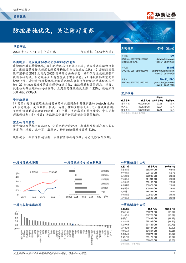 【华泰证券】【20221211】防控措施优化,关注诊疗复苏-11页