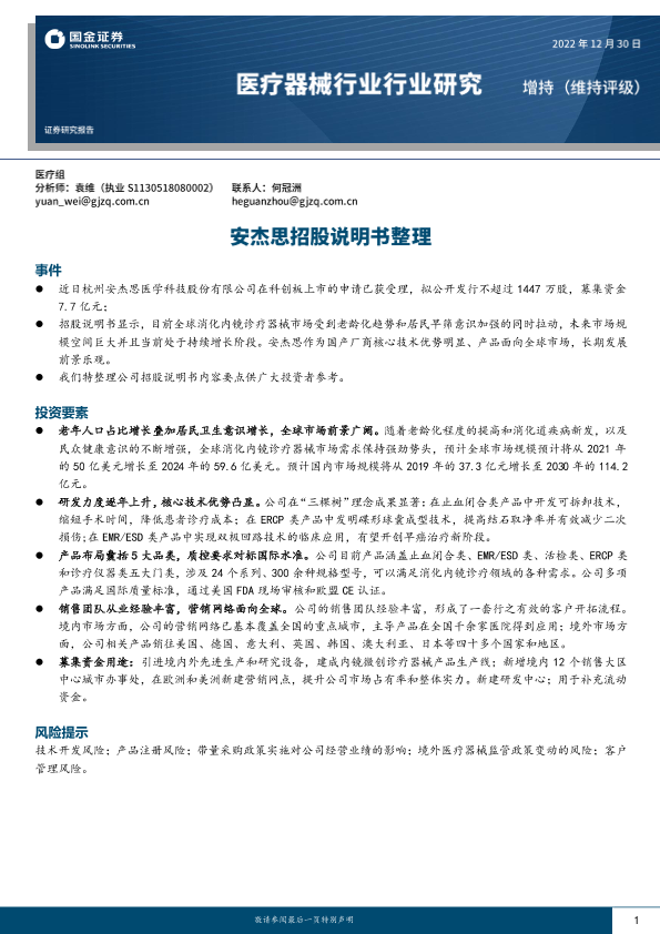 【国金证券】【20221230】医疗器械行业研究:安杰思招股说明书整理-22页