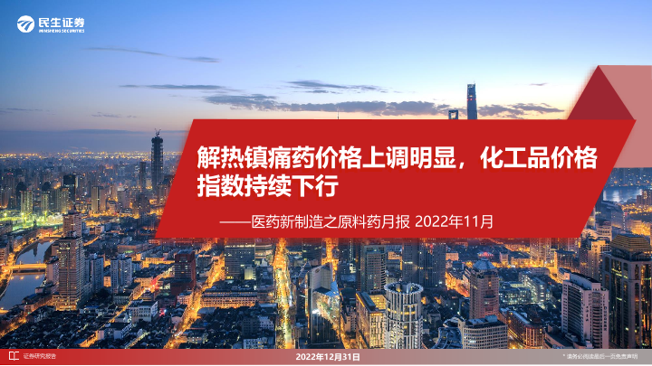 【民生证券】【20221231】医药新制造之原料药月报2022年11月:解热镇痛药价格上调明显,化工品价格指数持续下行-21页