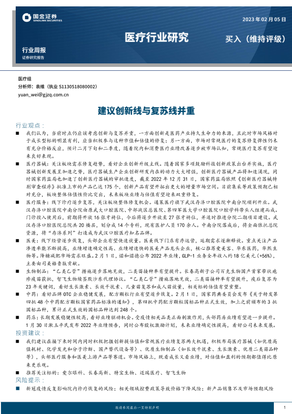 【国金证券】【20230205】医疗行业研究:建议创新线与复苏线并重-11页