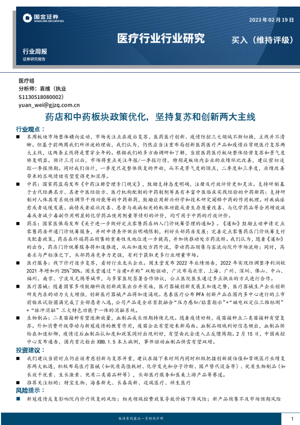 【国金证券】【20230219】医疗行业行业研究:药店和中药板块政策优化,坚持复苏和创新两大主线-10页