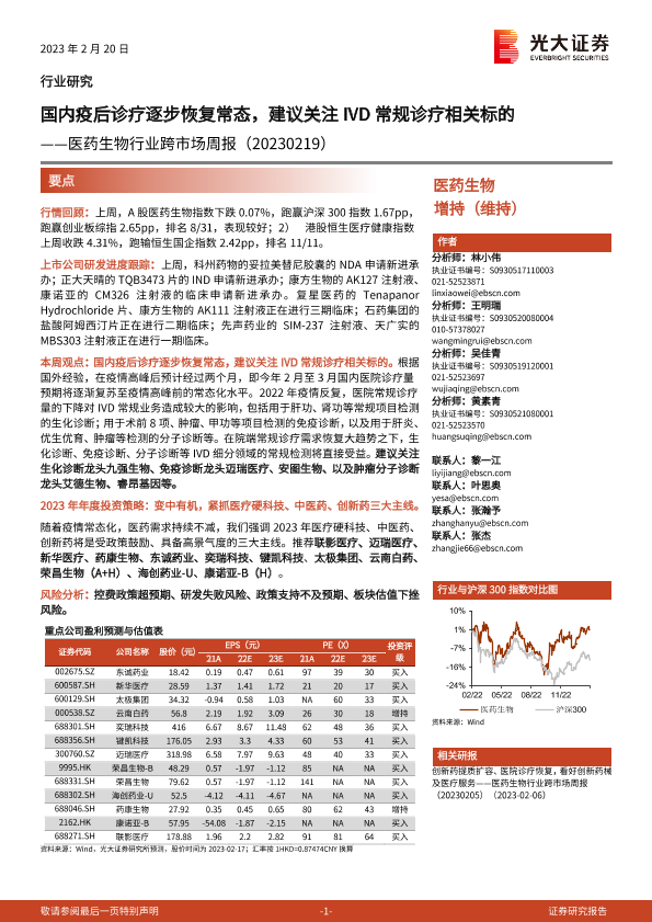 【光大证券】【20230220】国内疫后诊疗逐步恢复常态,建议关注IVD常规诊疗相关标的-22页