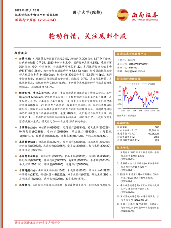 【西南证券】【20230225】医药行业周报:轮动行情,关注底部个股-35页