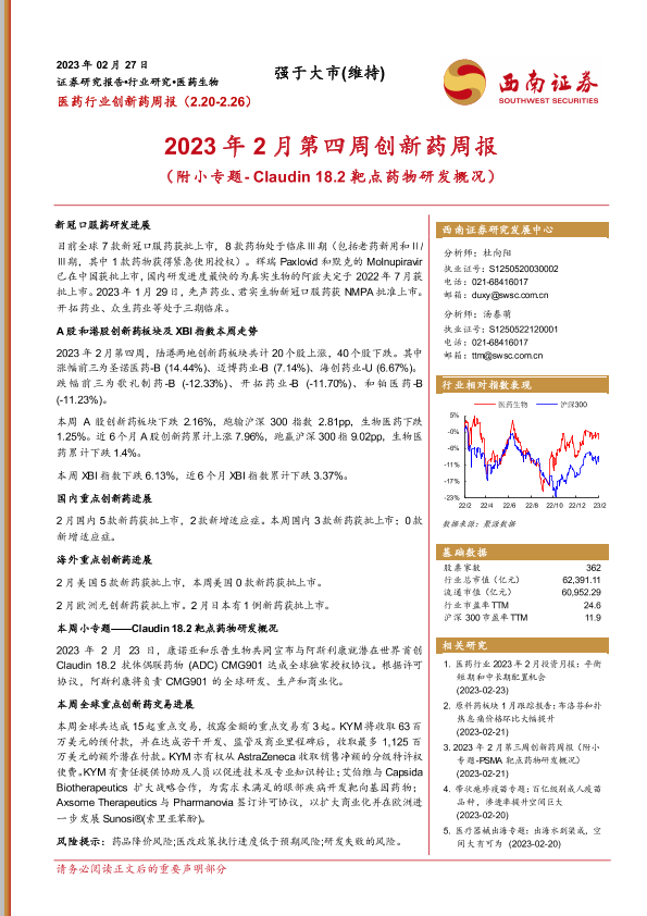 【西南证券】【20230227】2023年2月第四周创新药周报-22页