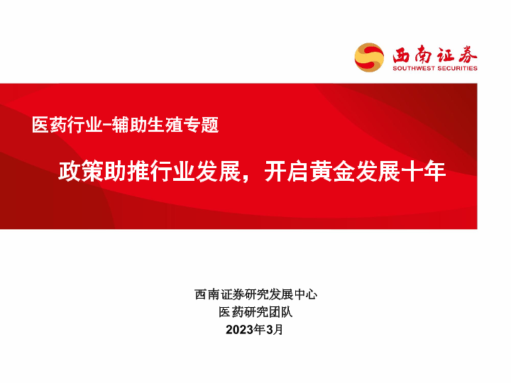 【西南证券】【202303】医药行业-辅助生殖专题:政策助推行业发展,开启黄金发展十年-49页