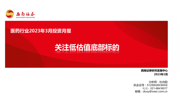 【西南证券】【202303】2023年3月医药行业投资月报:关注低估值底部标的-109页