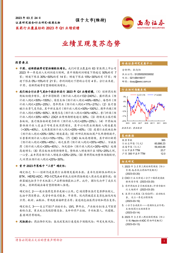 【西南证券】【20230324】医药行业覆盖标的2023年Q1业绩前瞻:业绩呈现复苏态势-10页