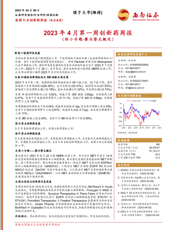 【西南证券】【20230409】2023年4月第一周创新药周报-19页