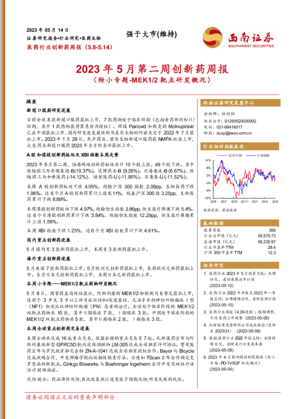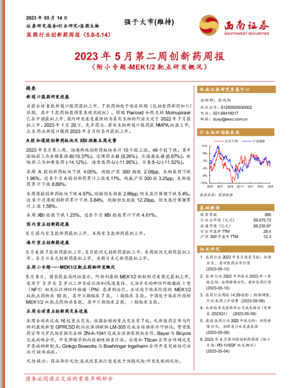 【西南证券】【20230514】2023年5月第二周创新药周报-20页