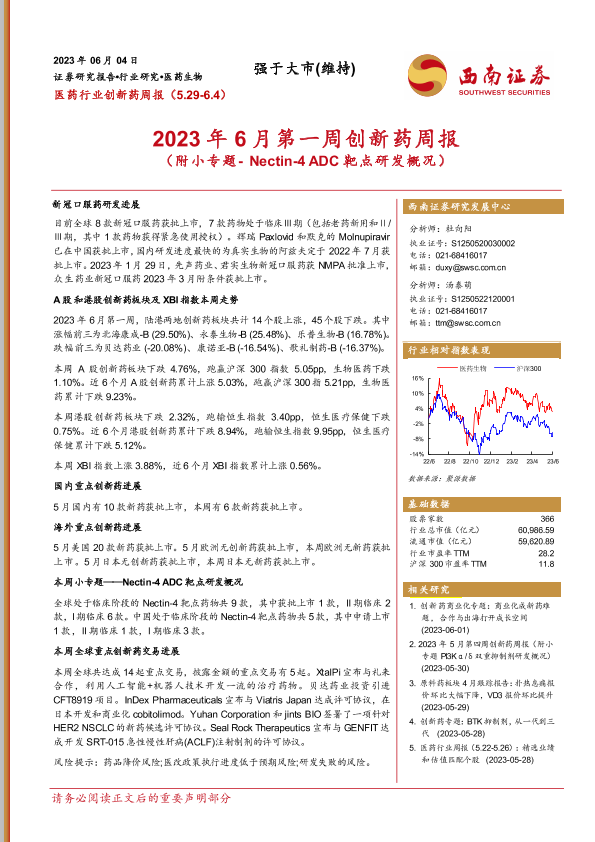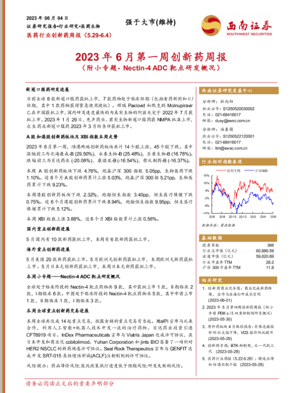 【西南证券】【20230604】2023年6月第一周创新药周报-22页