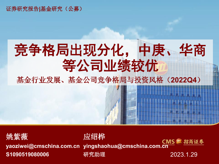 【海通证券】【20230129】基金行业发展、基金公司竞争格局与投资风格(2022Q4):竞争格局出现分化,中庚、华商等公司业绩较优-36页
