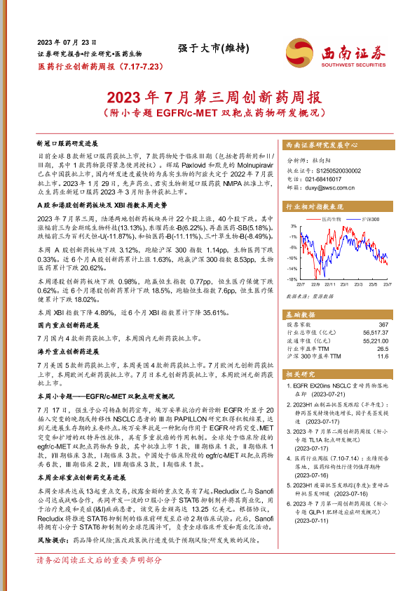 【西南证券】【20230723】2023年7月第三周创新药周报-21页