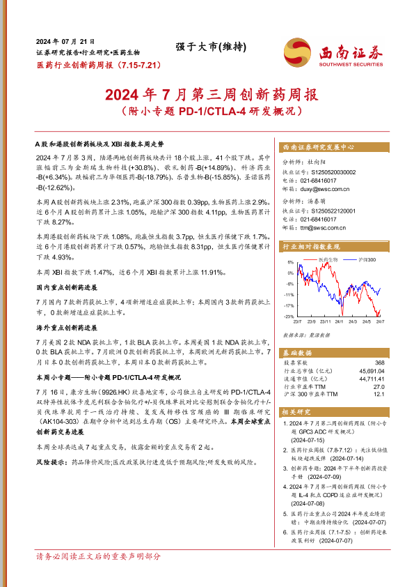 【西南证券】【20240721】2024年7月第三周创新药周报-18页