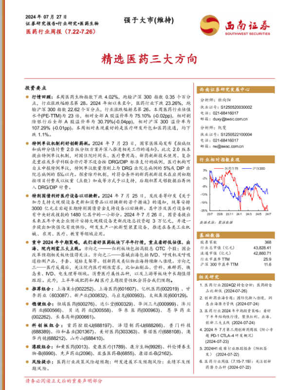 【西南证券】【20240727】医药行业周报:精选医药三大方向-35页