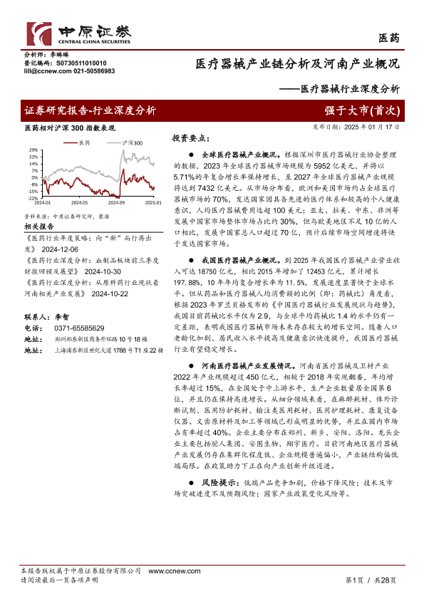 【中原证券】【20250117】医疗器械行业深度分析:医疗器械产业链分析及河南产业概况-28页
